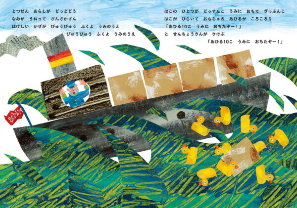 A ship carrying toys made in a factory encounters a storm in the middle of the vast ocean and ends up dropping one of its boxes into the sea. Inside the box were ten toy ducks! Carried by the waves, they drift apart, heading east and west, meeting various sea animals such as dolphins, seals, polar bears, and flamingos. But what did the tenth duck encounter…?