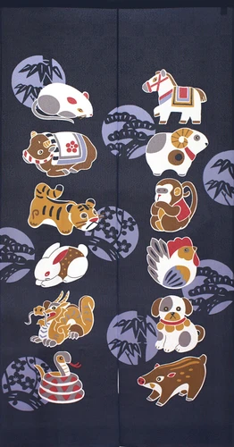 12 Zodiac Animals Noren 85x150cm
