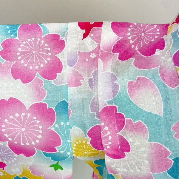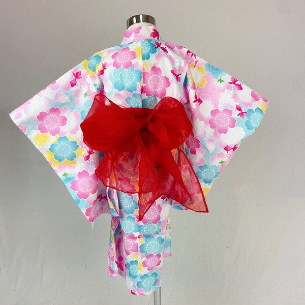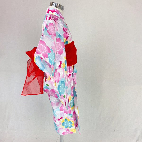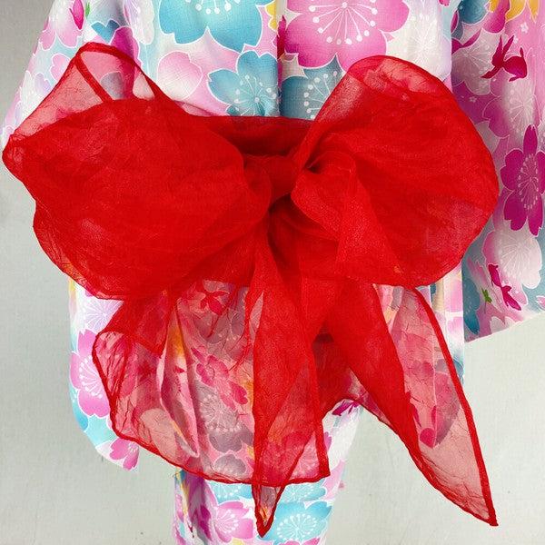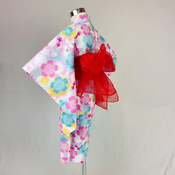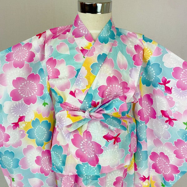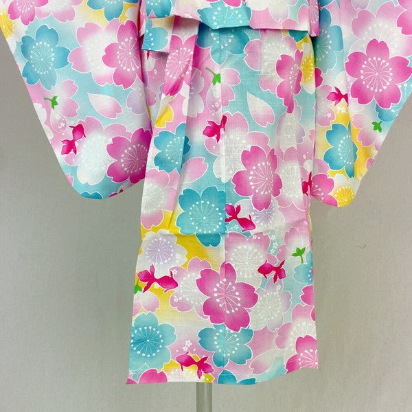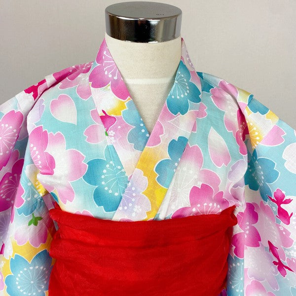 2-pc Kids’ Yukata Set | Sakura & Goldfish w/ Red Obi Design (2 sizes)