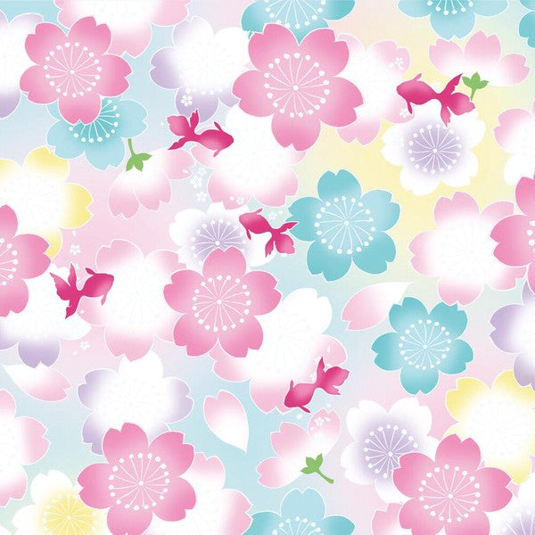 - Charming 2-piece set featuring a colourful sakura and goldfish pattern