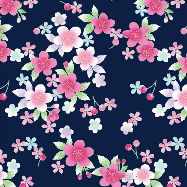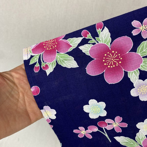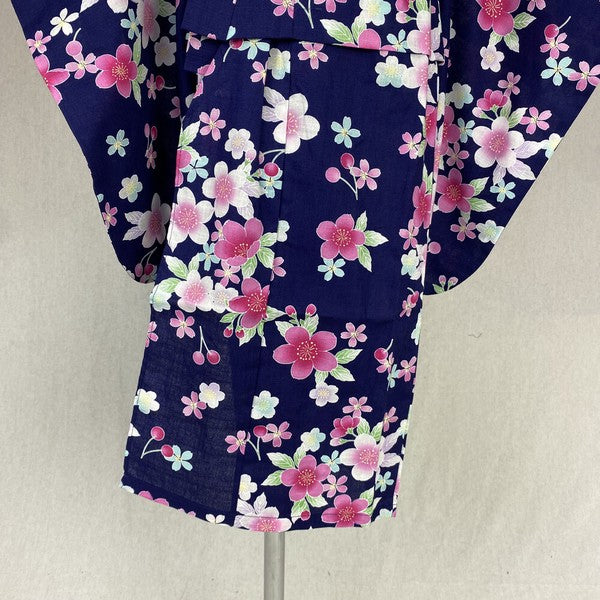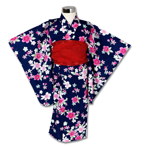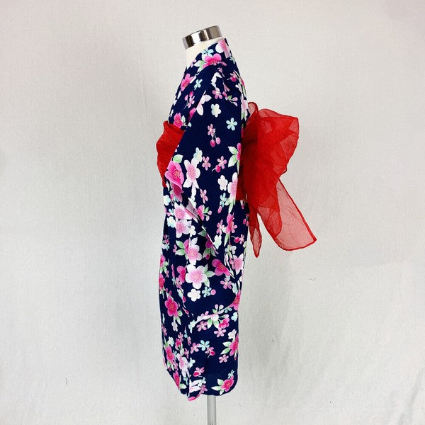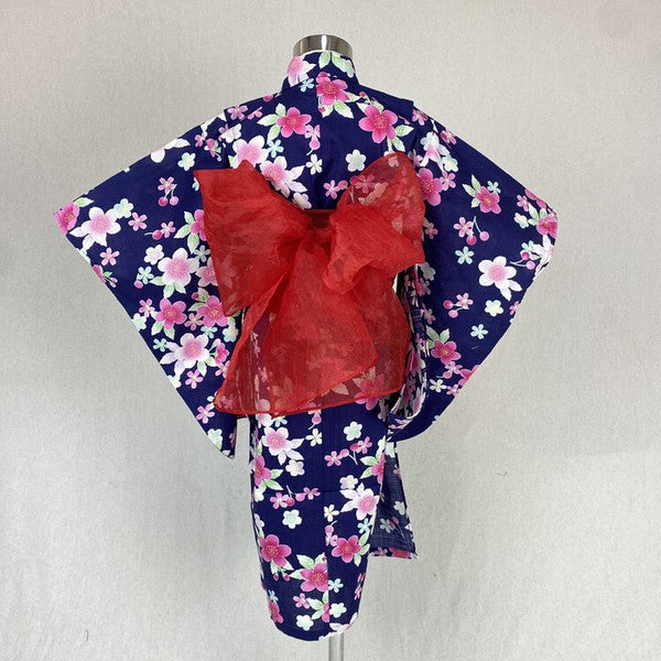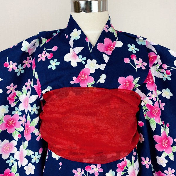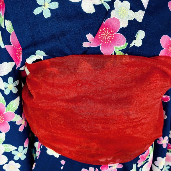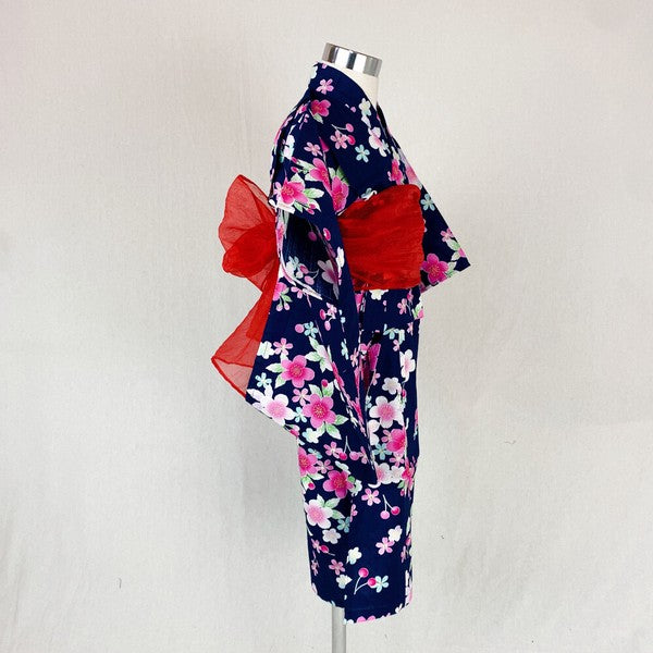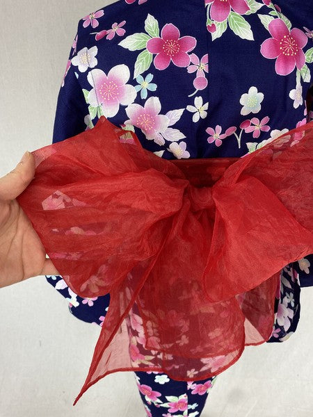 2-pc Kids’ Yukata Set | Sakura on Navy Blue w/ Red Obi Design (2 sizes)