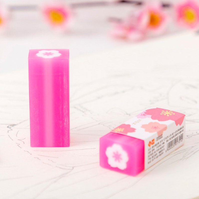 Add a delicate touch of spring to your stationery with this beautiful 36-pack of assorted sakura-themed erasers. Each eraser features a soft pastel design inspired by cherry blossoms, making them both functional and lovely to look at.
