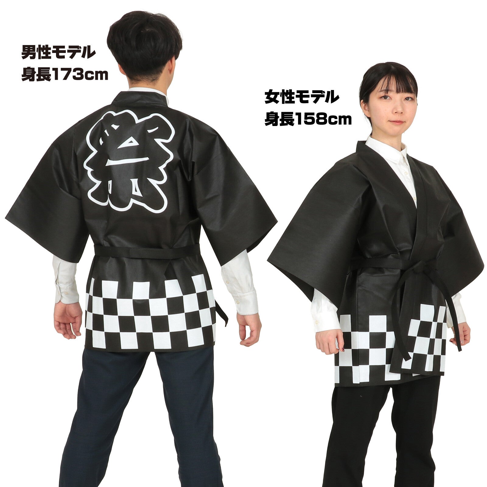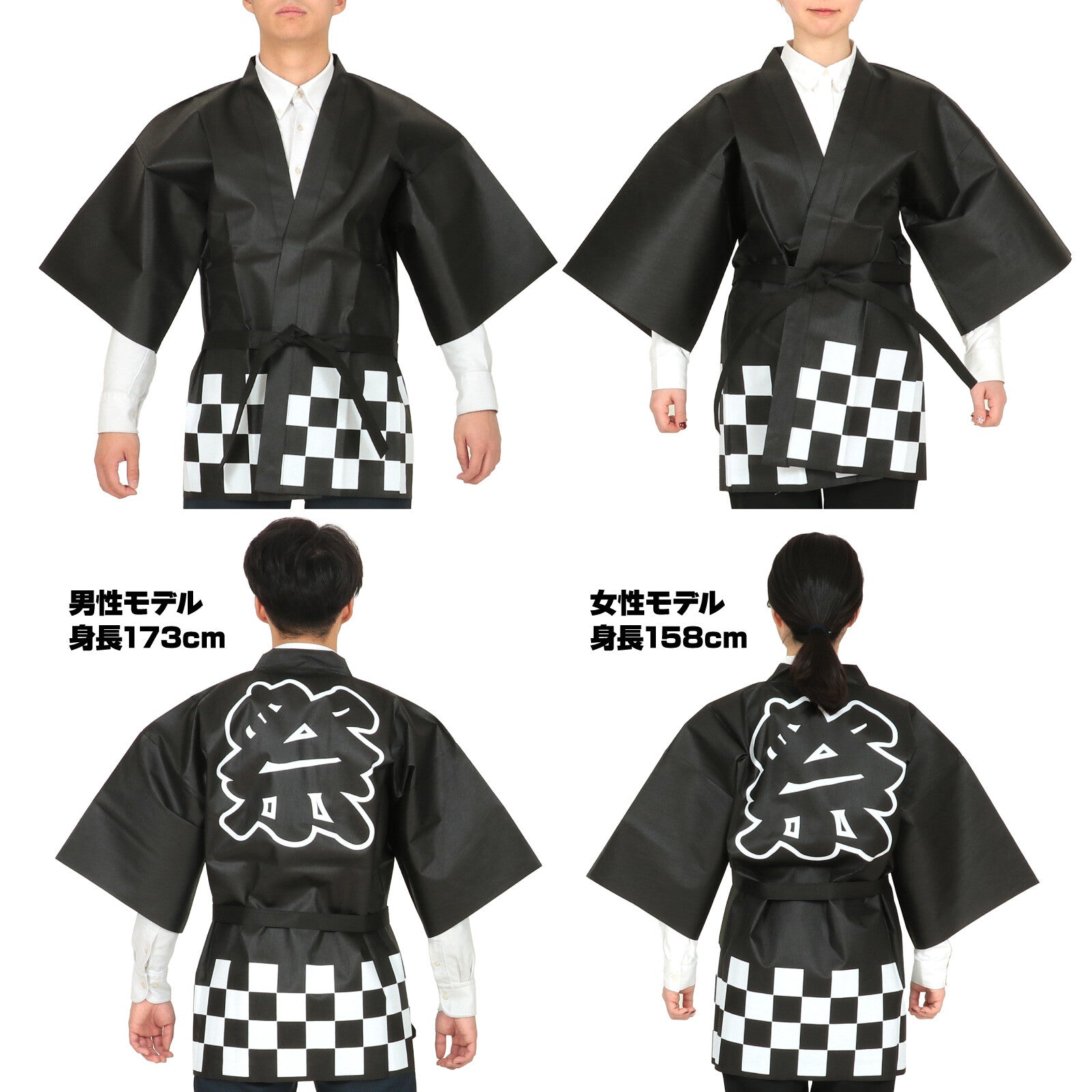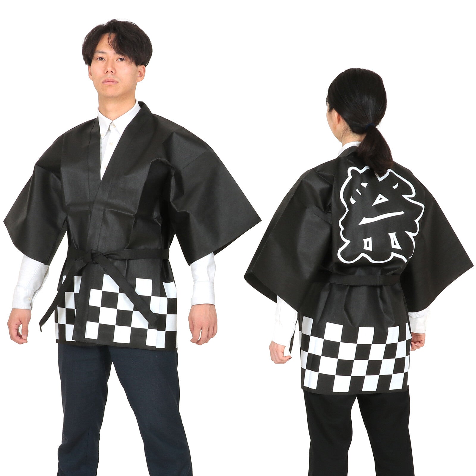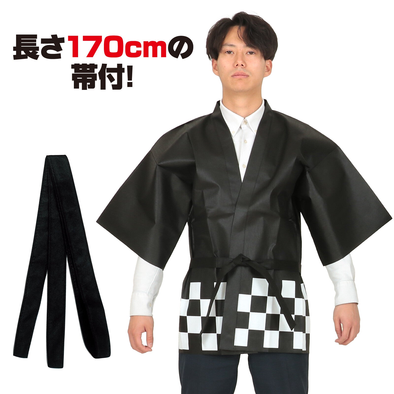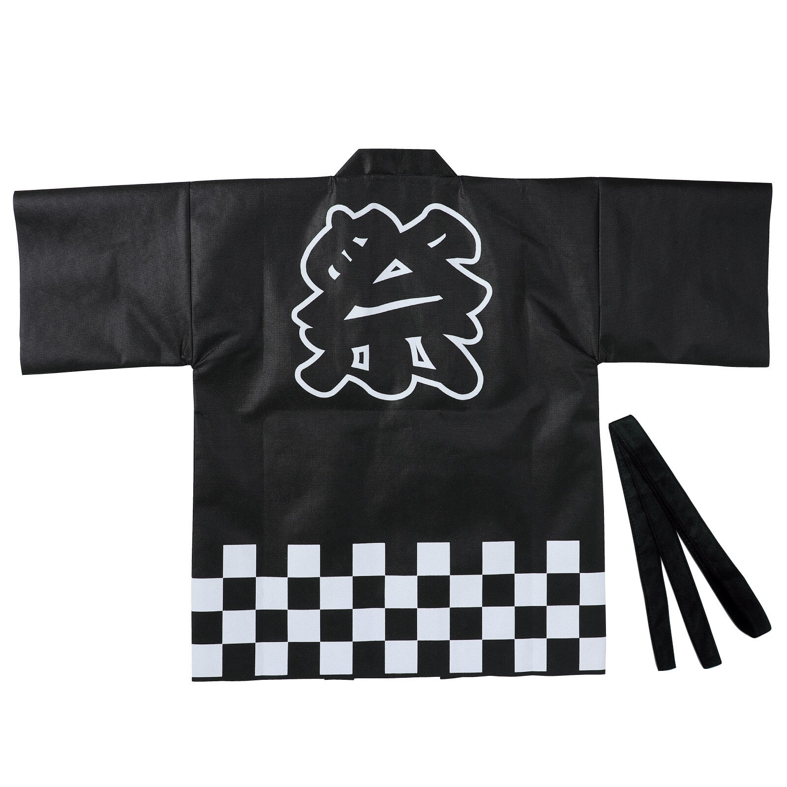 Budget Non-woven Matsuri Happi with belt for Adults [BLACK]