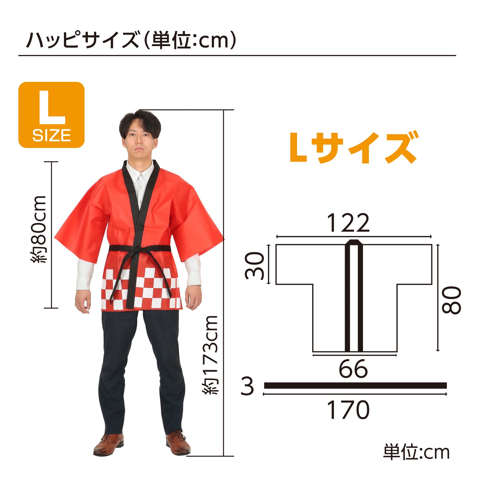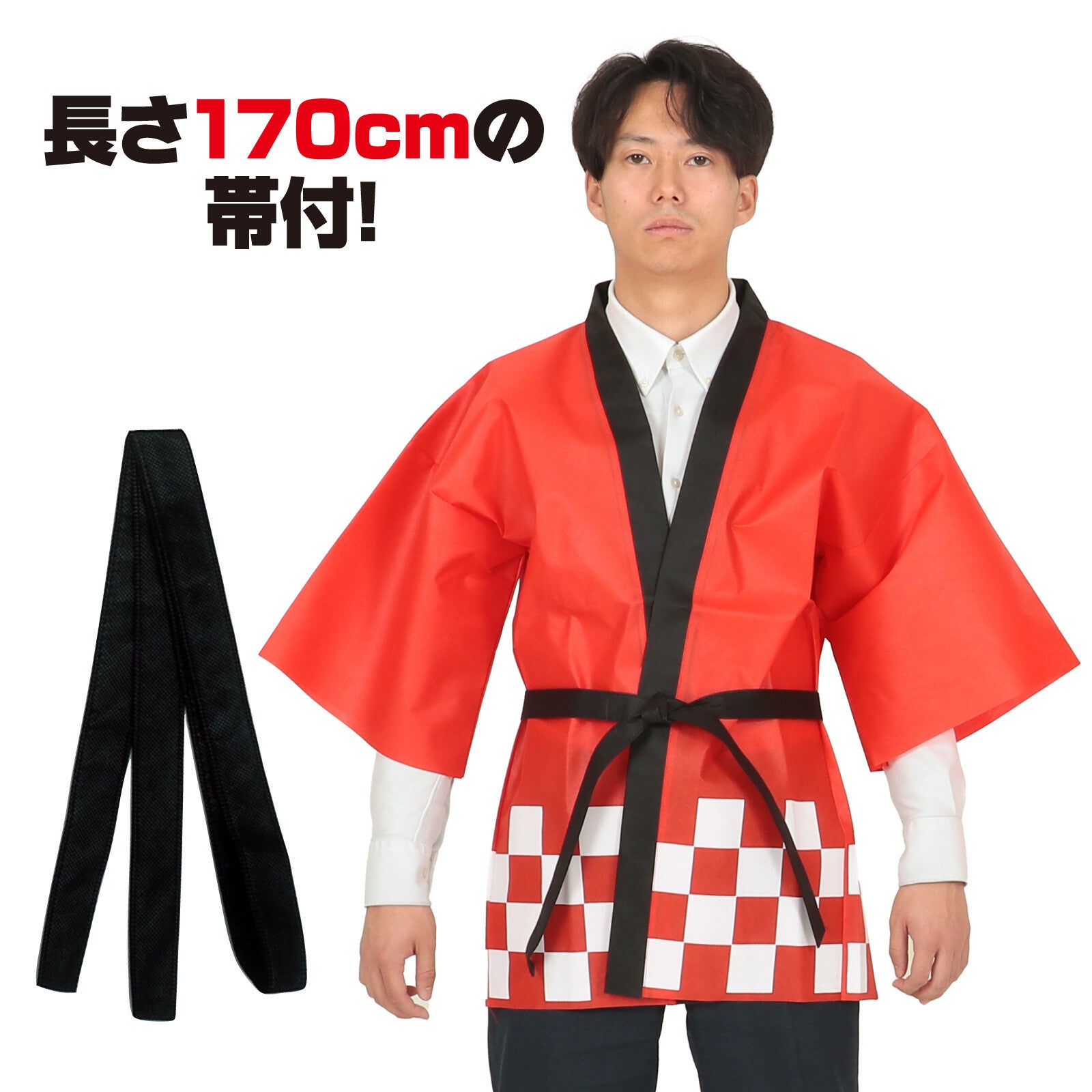 Budget Non-woven Matsuri Happi with belt for Adults [RED]