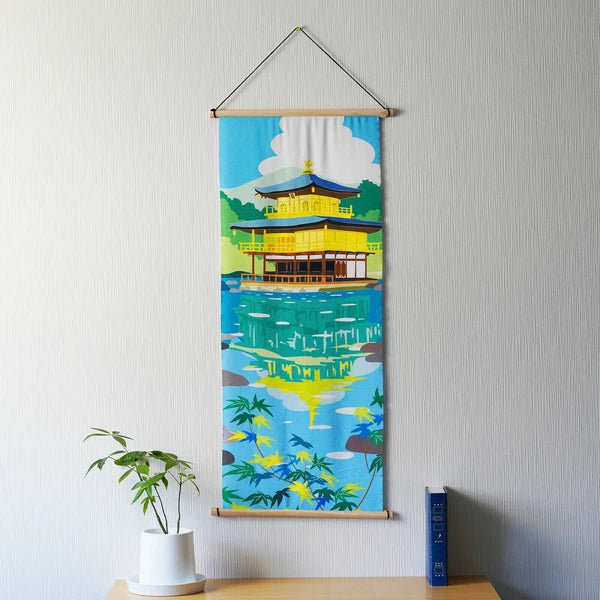 Wall Hanging Scroll Chirimen Tapestry - Kinkakuji Temple in Summer