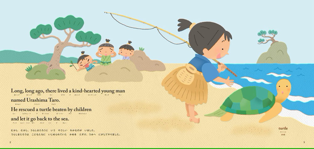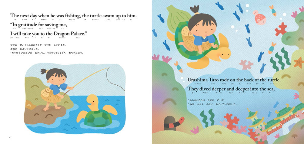 The book comes with a bilingual translation of English and Japanese, and katakana notation that provides clues to English pronunciation, so parents can read the three stories directly to their children.