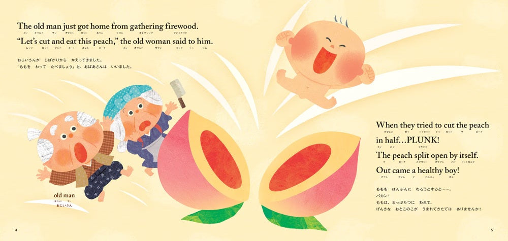 It comes with English and Japanese translations, and katakana notation that provides clues to English pronunciation, so parents can read the three stories directly to their children.
