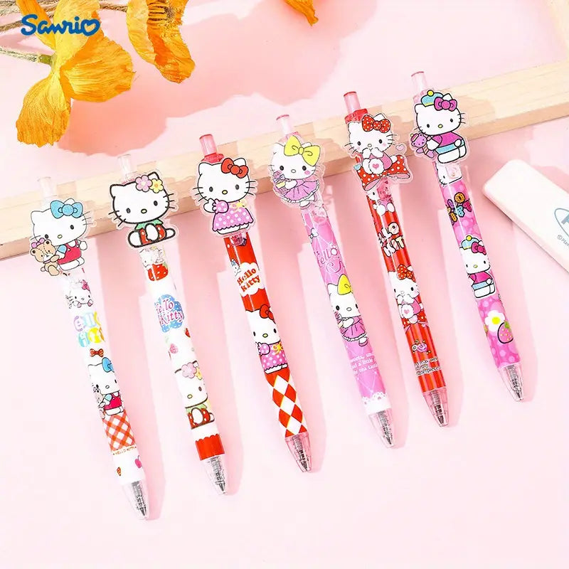 Add a touch of kawaii charm to your stationery collection with these adorable Hello Kitty-themed pens! Featuring vibrant pink and red designs with different Hello Kitty illustrations and cute character toppers.