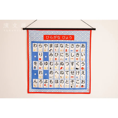 Make learning hiragana fun and stylish with this beautifully designed Hiragana Furoshiki! Featuring a colourful hiragana chart with matching illustrations, this 50x50cm furoshiki is both an educational tool and a practical wrapping cloth.