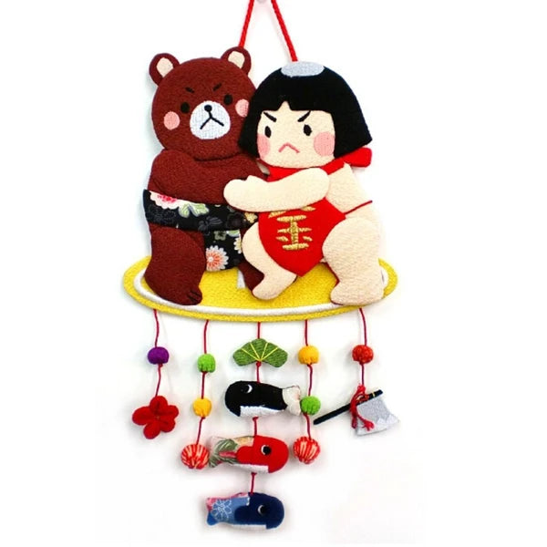 Chirimen Fabric Kintaro & Bear Sumo Wrestling Hanging Decoration Ornament