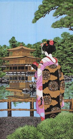 Kinkaku Temple Geisha in Spring Noren 85x150cm