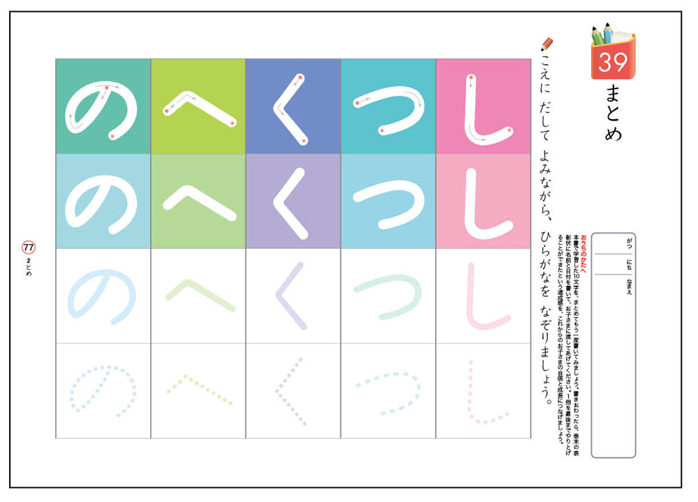 : ・Practice 10 easy-to-write hiragana characters