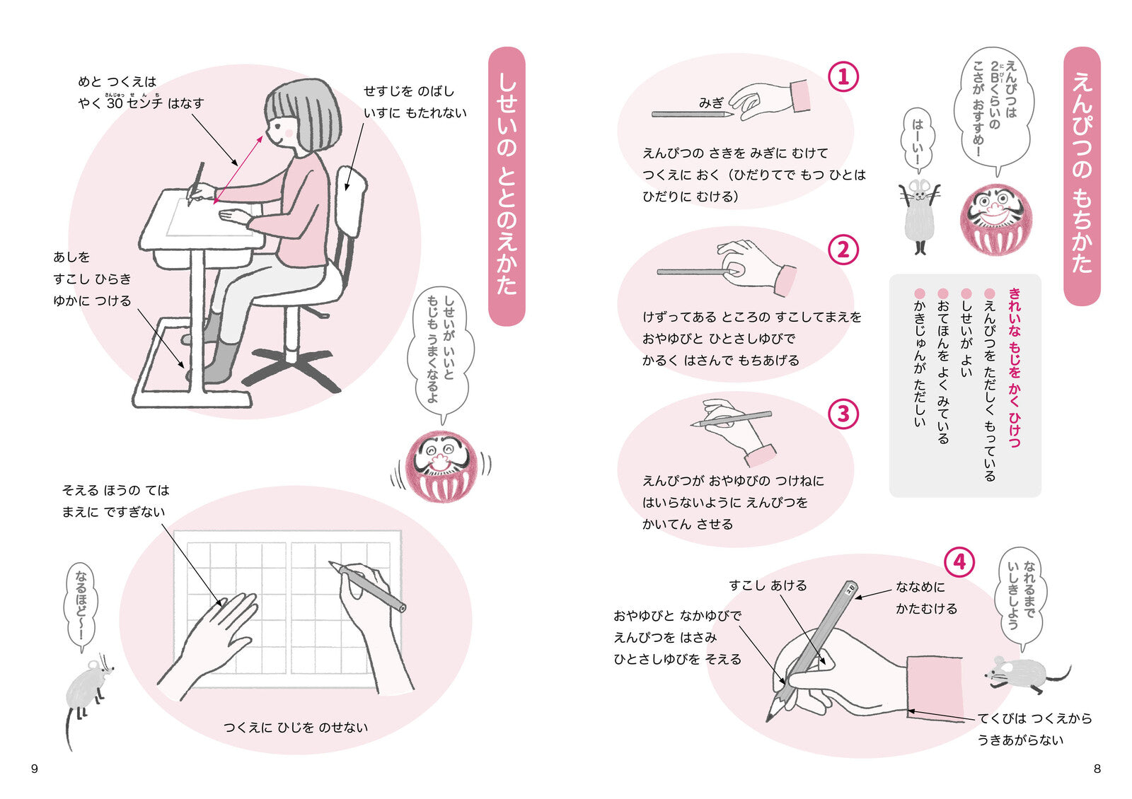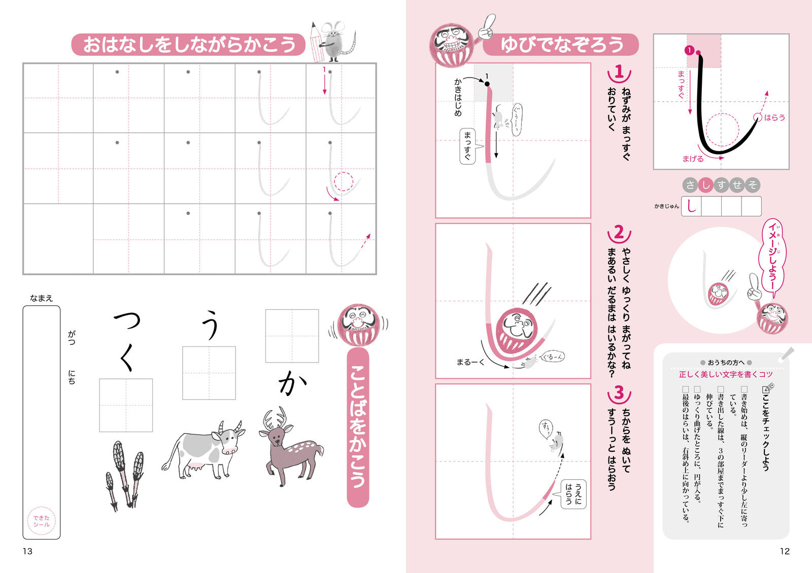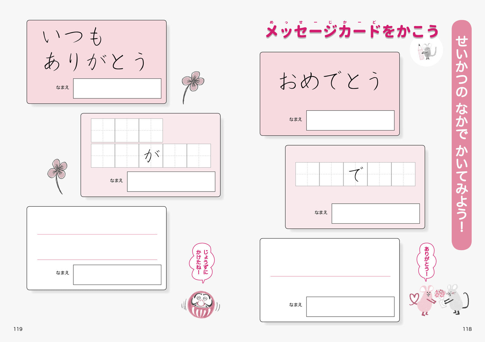 This popular hiragana practice book features the beloved characters Mouse and Daruma as your guides!