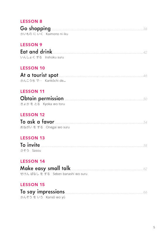 This book was created by a Japanese teacher with over ten years of experience teaching beginners. It uses straightforward English to introduce simple, practical Japanese that can be applied immediately in daily life. Phrases are shown in romaji, English, and Japanese, making it easy to see how meanings expand simply by swapping words.