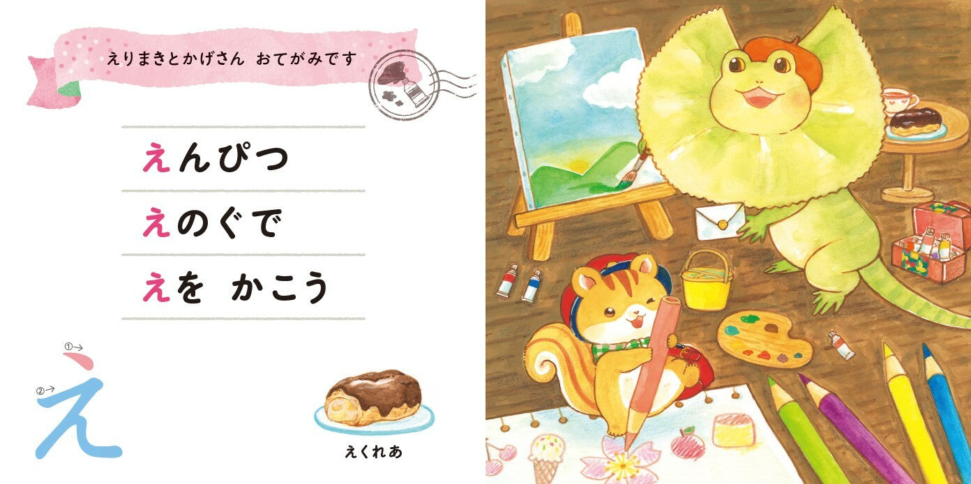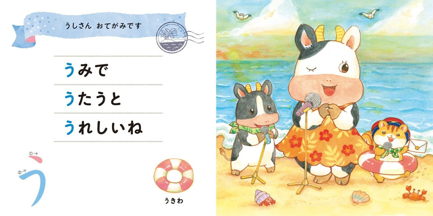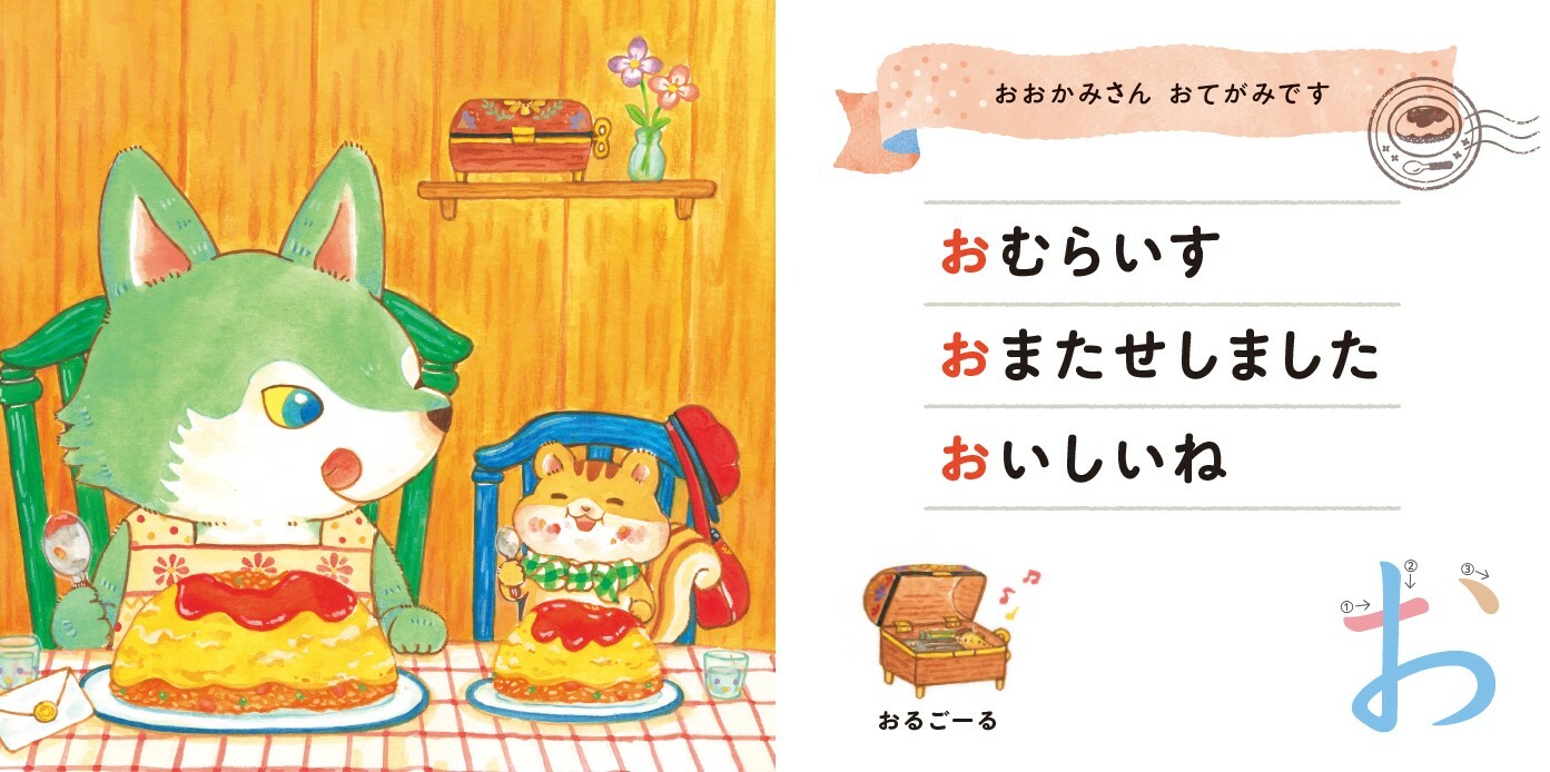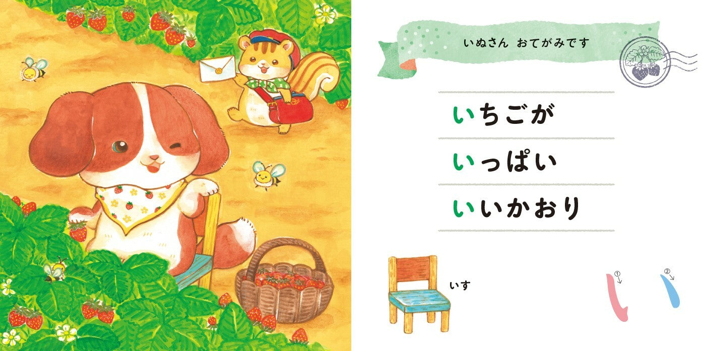 Rather than simply listing “a-i-u-e-o” words, this charming story follows a little squirrel postman as he delivers invitations to various animal friends—leading up to a surprise party at the end!