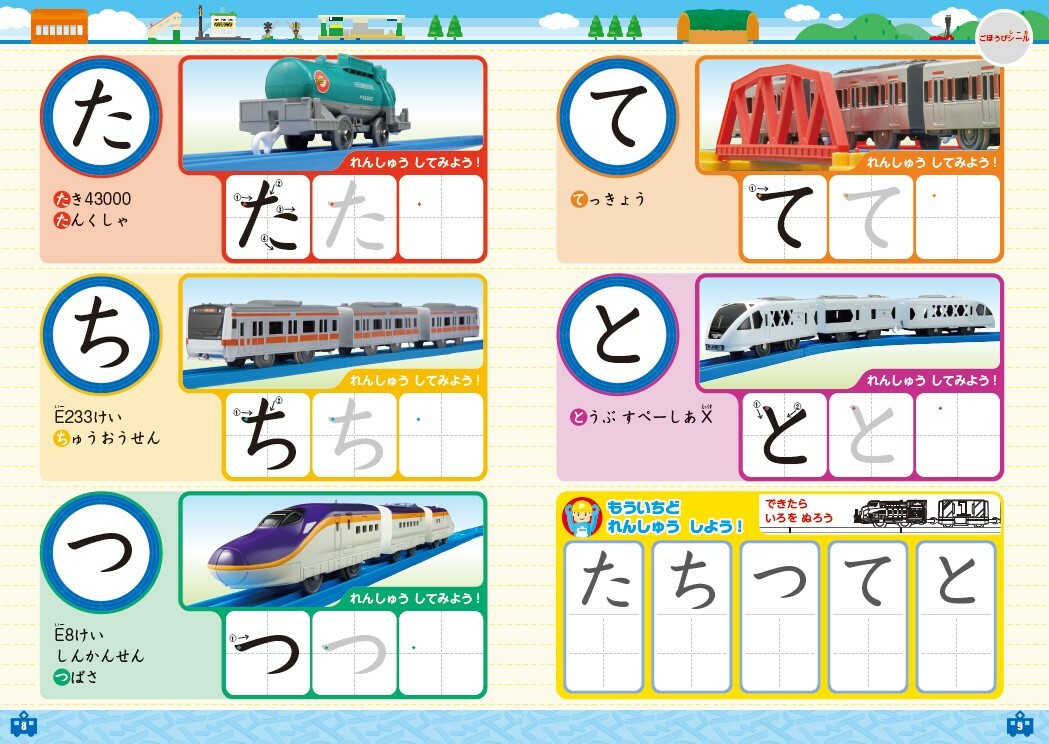 Part of an educational development series based on the beloved Plarail toy line, this book combines both hiragana and katakana in one complete volume—perfect as a foundation for early literacy.