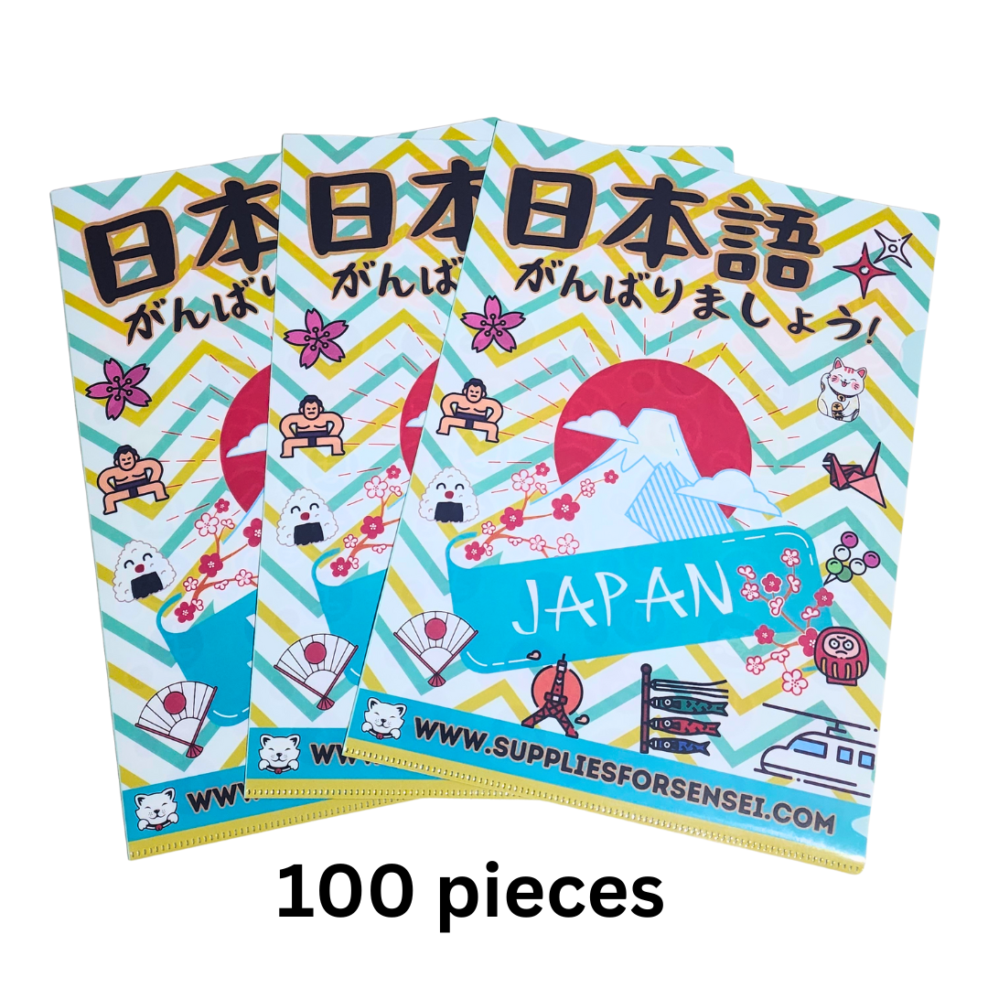 100x Japanese A4 Plastic Document Folder – Motif Front & Kana Chart Back