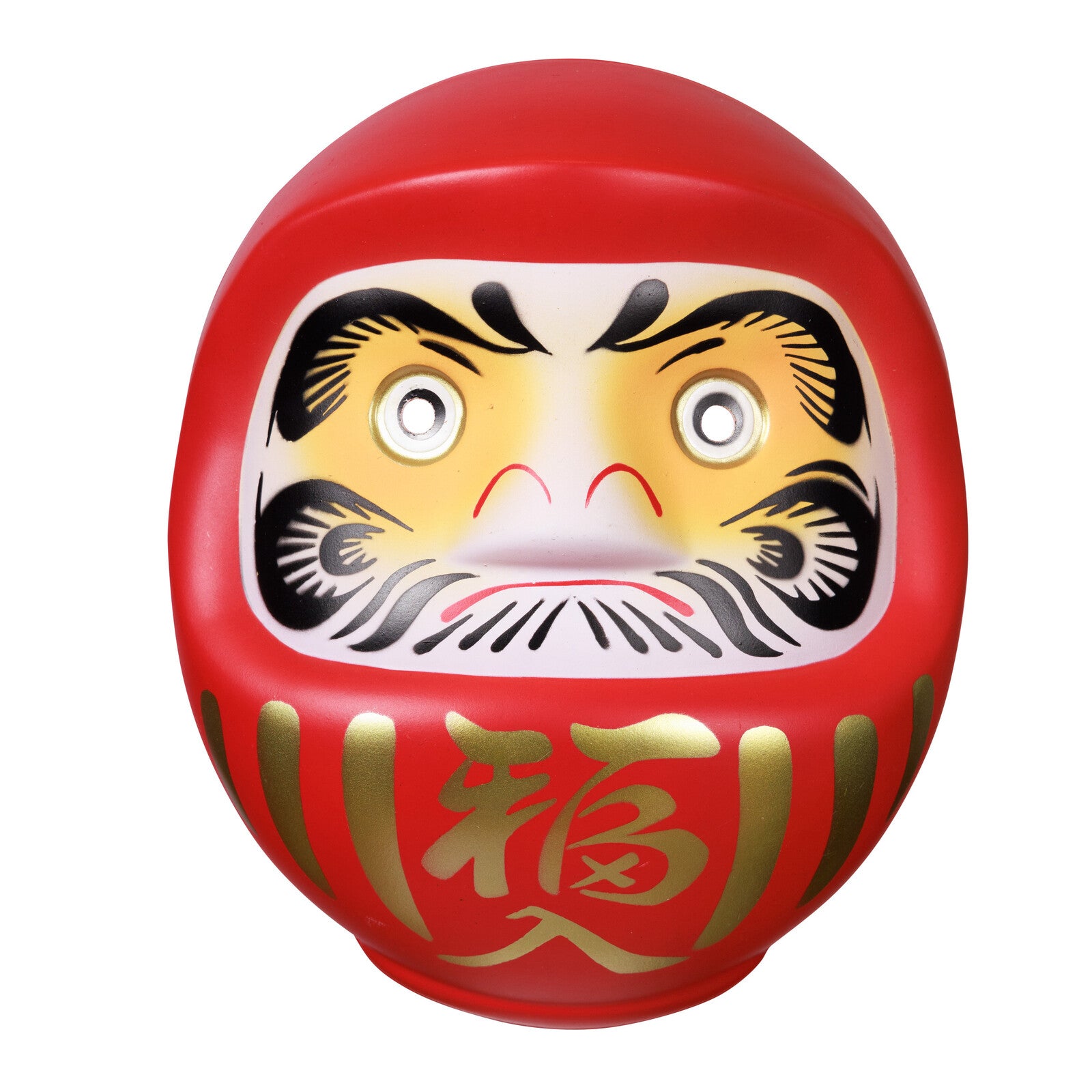 A mask inspired by traditional Japanese motifs with a touch of wa style. This design takes its cue from the auspicious Daruma doll, a well-known symbol of good fortune. The vibrant red colour, bold eyebrows and beard, along with the character “福” (meaning “good fortune” or “blessing”), all add to its lucky charm.