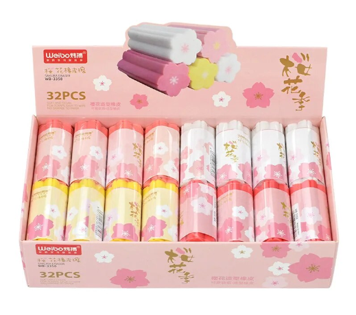 🔹 Pack Includes: 32 stick-style erasers in a cherry blossom case