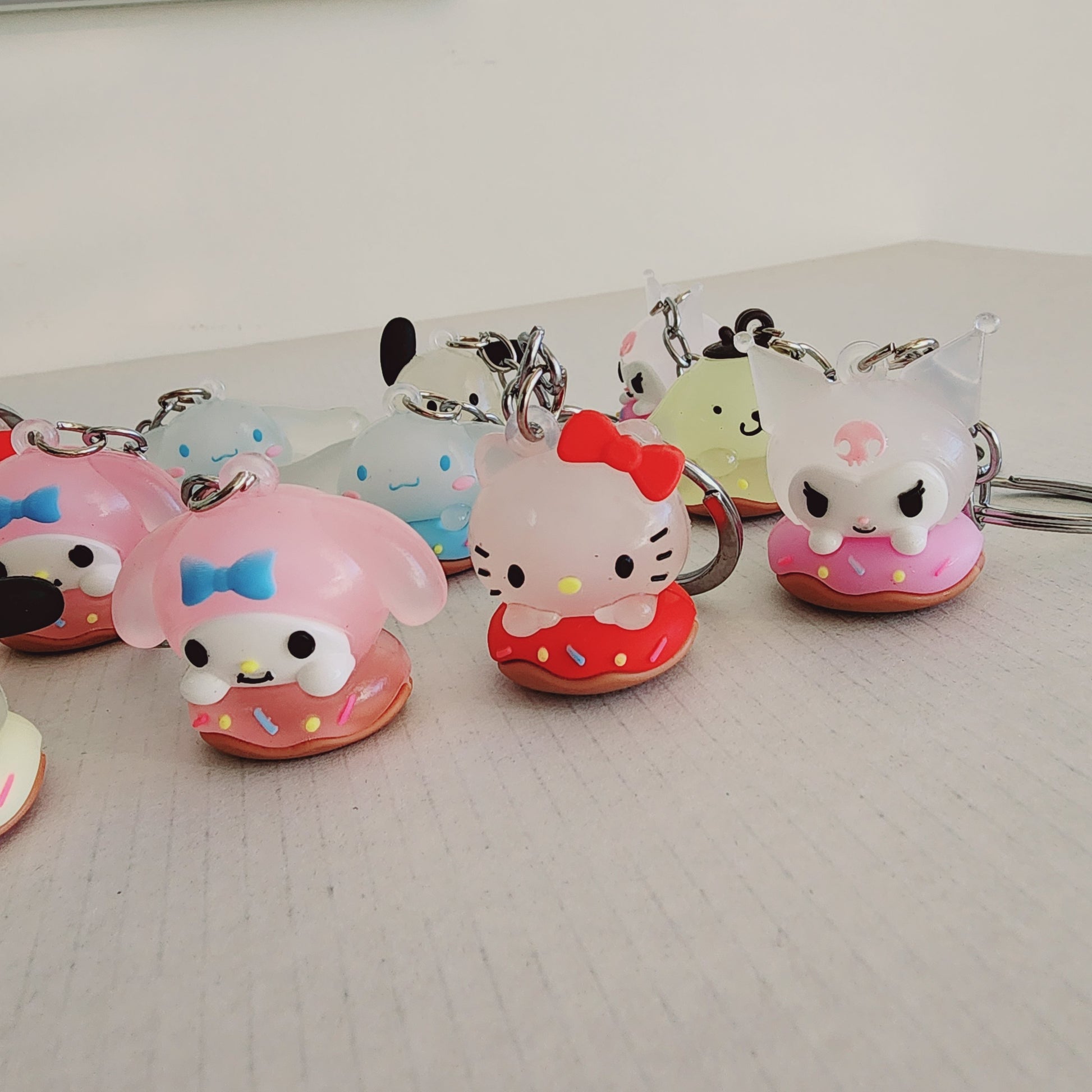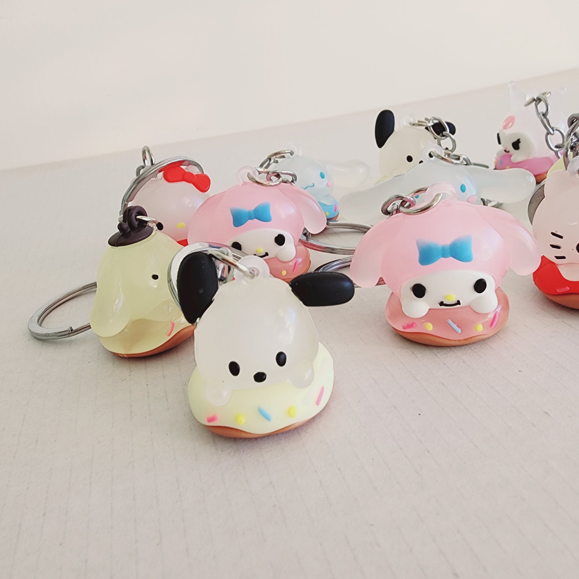 Add a sprinkle of cuteness to your day with these adorable donut-themed Sanrio keychains! Featuring favourites like Hello Kitty, My Melody, Cinnamoroll, Kuromi, Pompompurin, and more, each keychain is styled like a sweet treat with colourful icing and sprinkles.