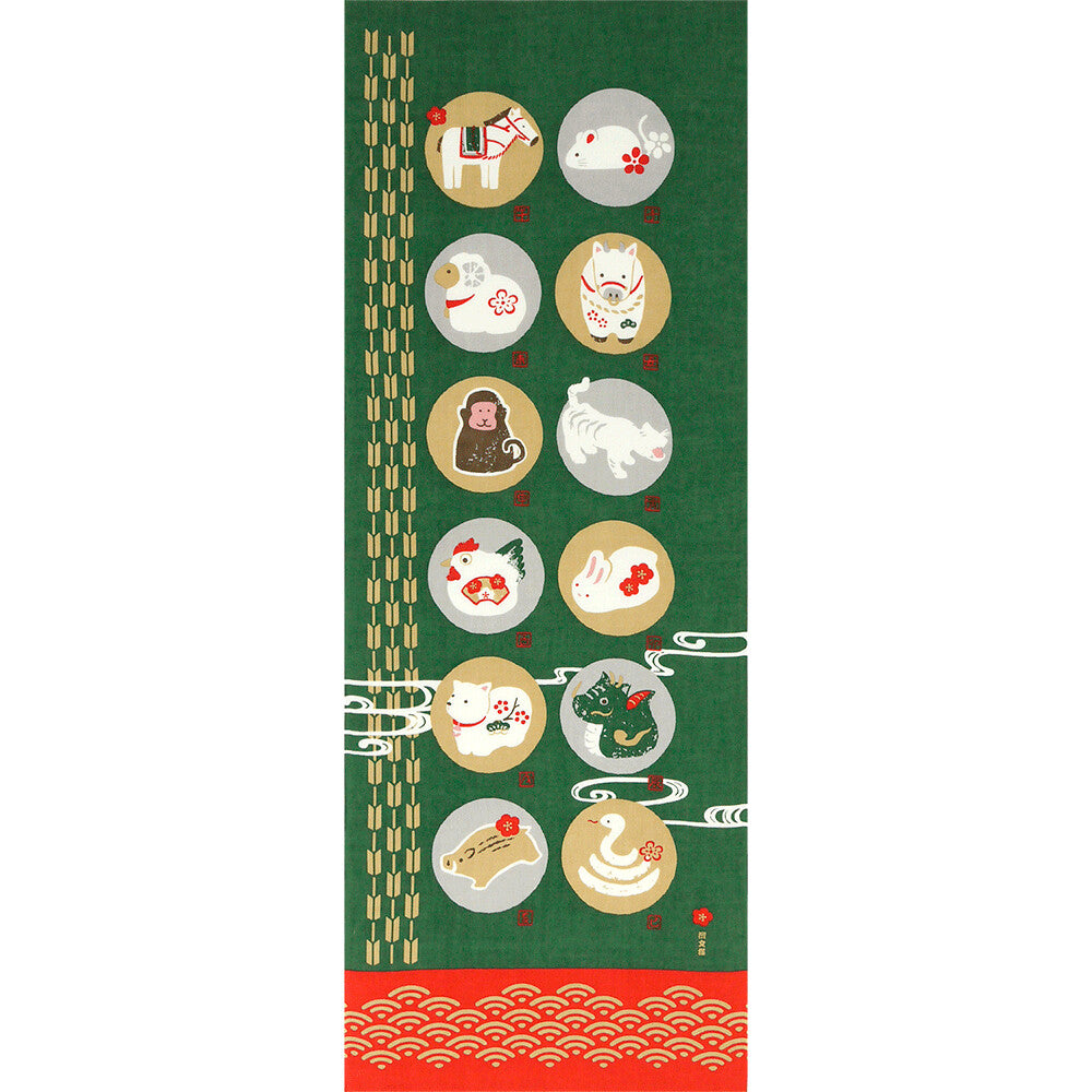 Celebrate the charm of the Japanese Zodiac with this beautifully designed Tenugui! Featuring all 12 zodiac animals in a delightful, traditional illustration, this tenugui is brilliant for adding a touch of Japanese culture to your home, workspace, or personal collection.