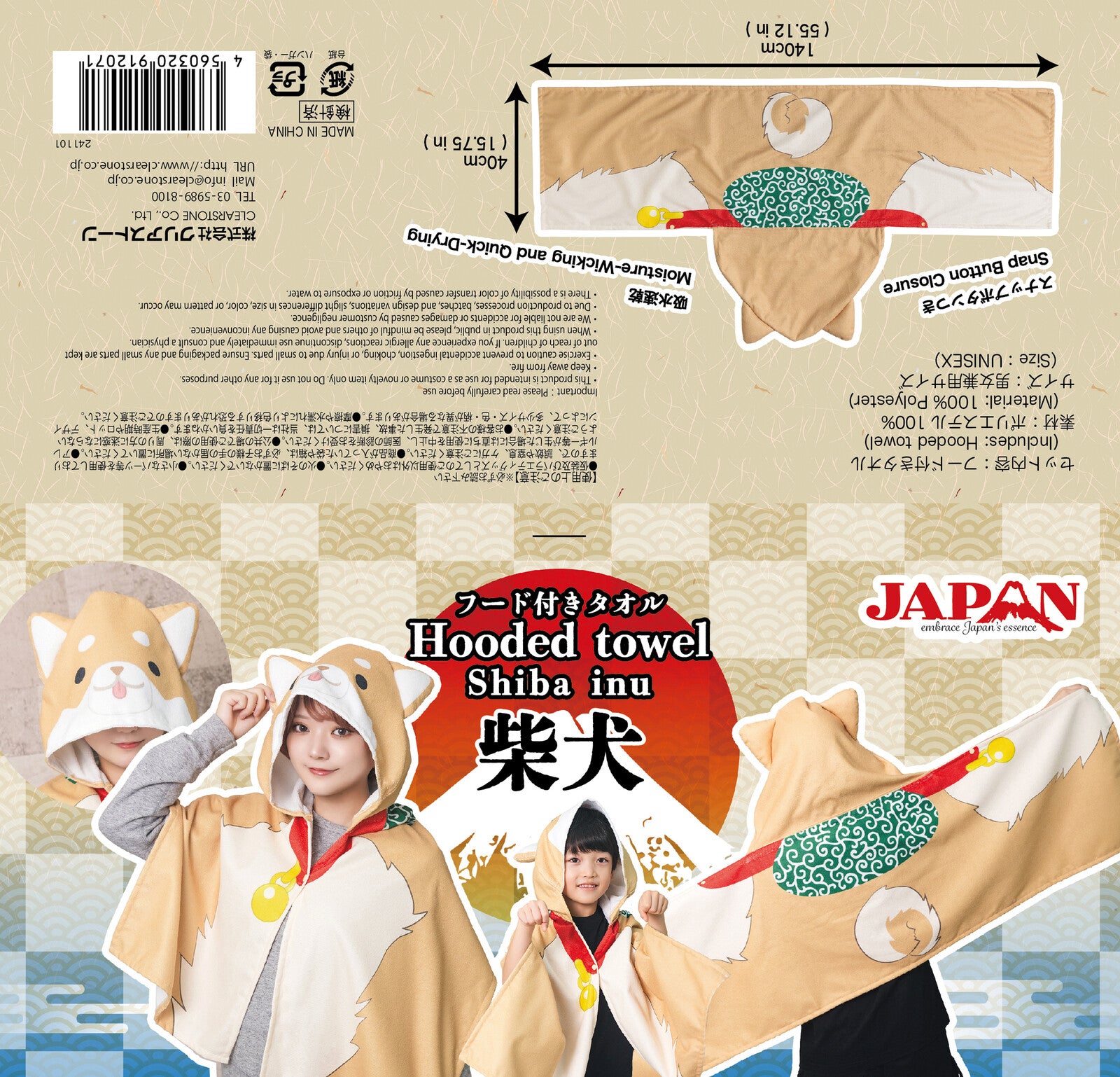 Made from quick-drying microfiber fabric, this towel is practical and versatile. Ideal for festivals, the beach, poolside, after a bath, or even as a playful Halloween outfit. Suitable for both kids and adults, making it a great item for the whole family to enjoy. It also makes a thoughtful souvenir for visitors interested in Japanese culture.