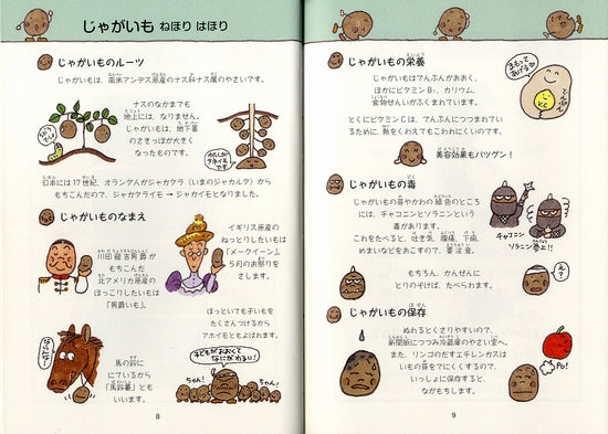 Learn all about hearty and delicious autumn vegetables like potatoes and sweet potatoes! This book explores their origins, fun facts, and detailed nutritional information—perfect as a first step in food education.