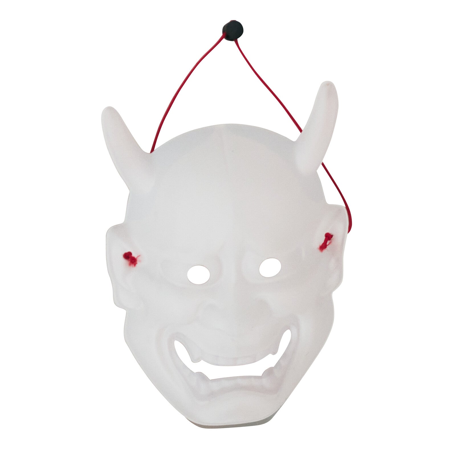 A mask inspired by traditional Japanese motifs with a dramatic wa aesthetic. This white Hannya mask is distinguished by its fearsome expression and sharp golden horns. The pale colour adds a mysterious, ethereal quality, enhancing its ghostly presence.