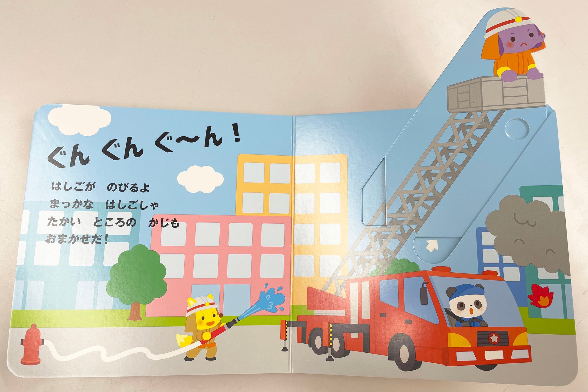 Watch the bulldozer’s big blade in action at the construction site, see the police car lights flashing, and move the bright red fire truck’s ladder up high!